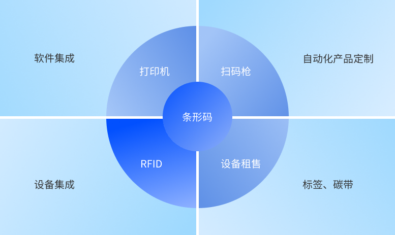 上海鋯瑞技術(shù)有限公司業(yè)務(wù)分為9大模塊,條形碼,RFID,打印機,掃描槍,軟件集成,設(shè)備集成,自動化產(chǎn)品定制,標簽碳帶和設(shè)備租售。 以條形碼和RFID為起點,以打印機,掃描槍和標簽碳帶為基礎(chǔ),逐步技術(shù)延伸,層層遞進,實現(xiàn)識別軟件系統(tǒng)開發(fā),自動化檢驗設(shè)備集成,自動化產(chǎn)品定制等自主創(chuàng)作研發(fā)能力,滿足各類企業(yè)物聯(lián)網(wǎng)應(yīng)用需求。